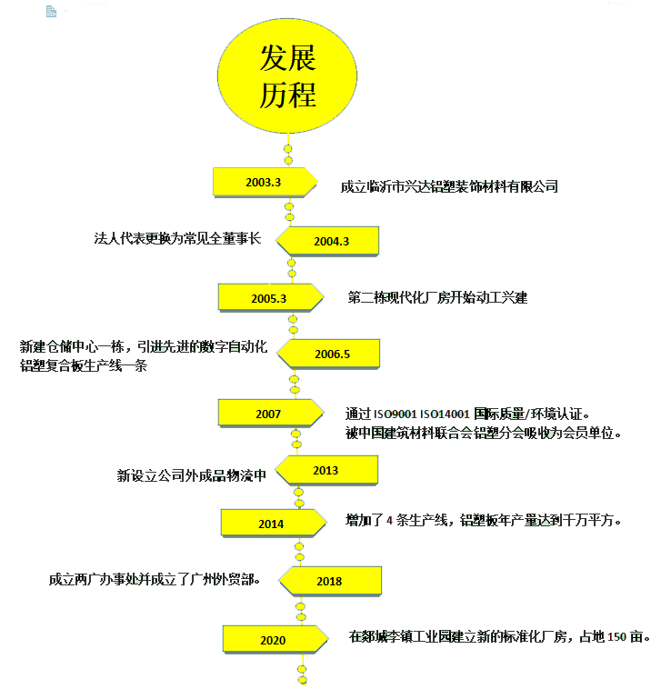 ● 2014至2017年,先后增加了4條生產線,鋁塑板年產量達到千萬平方。